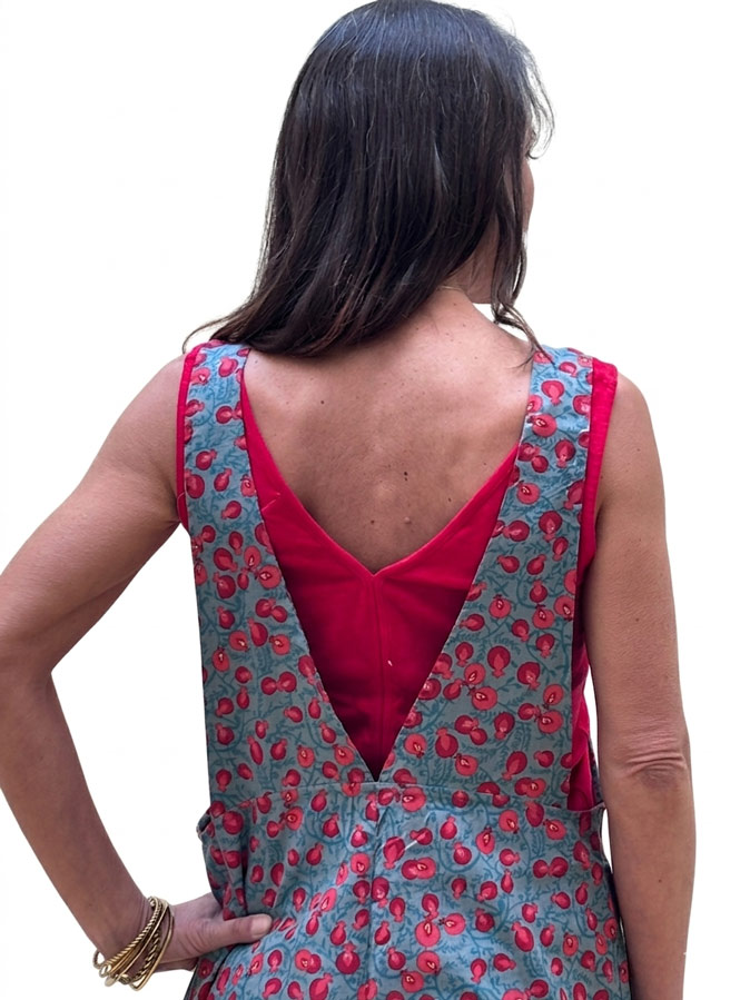 Ma coupe est droite, mon large décolleté V dans le dos et mon échancrure des aisselles vous permettront de mettre en valeur un top ou une brassière assorti.
