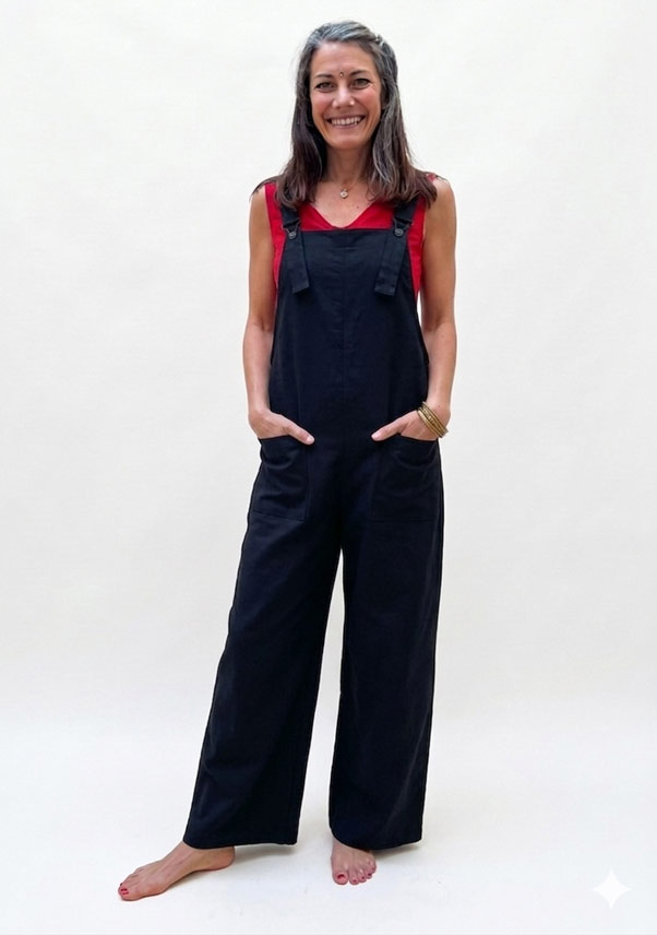 Je suis une salopette en coton légère et confortable.