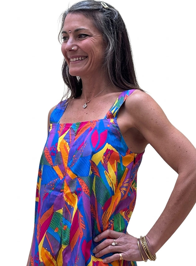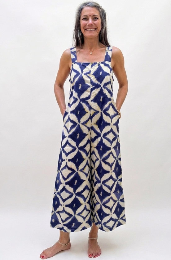 Je suis en coton épais (popeline) afin que le tombé de la salopette soit parfait.